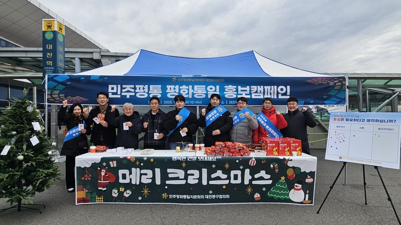 [동구 세계타임즈=이채봉 기자] 민주평화통일자문회의 대전동구협의회(회장 김종욱)는 지난 23일 대전역 서광장에서 시민들을 대상으로 ‘민주평통 평화통일 홍보캠페인’을 개최했다고 밝혔다.