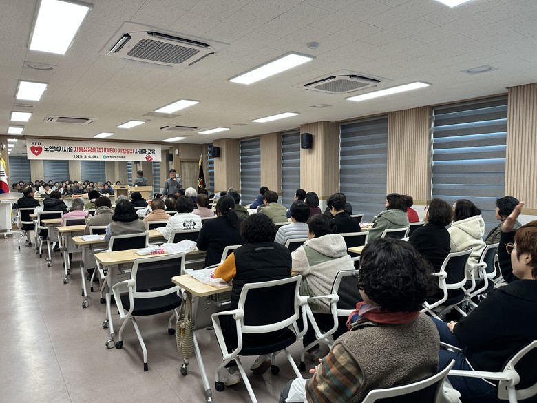 [평창군 세계타임즈=김민석 기자] 평창군보건의료원은 6일 노인복지시설 관계자와 시설 이용 어르신 등 40여 명을 대상으로 자동심장충격기 사용 교육을 추진했다.