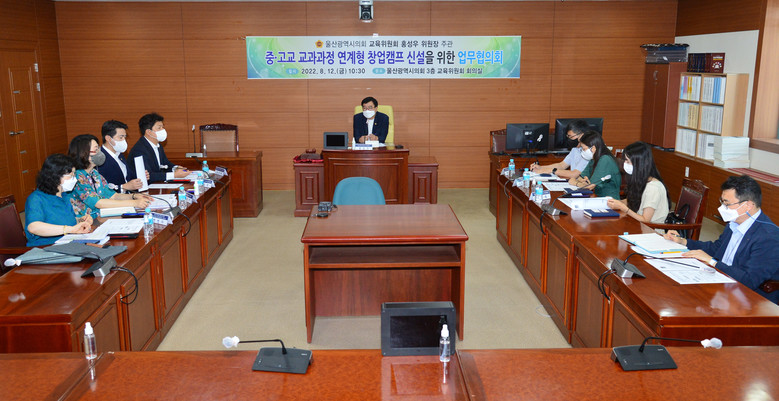 [울산 세계타임즈=이호근 기자] 울산광역시의회 홍성우 교육위원장은 12일 오전 10시 30분, 교육위원회 회의실에서 ‘중.고교 교과과정 연계형 창업캠프 신설을 위한 업무협의회’를 개최했다.
