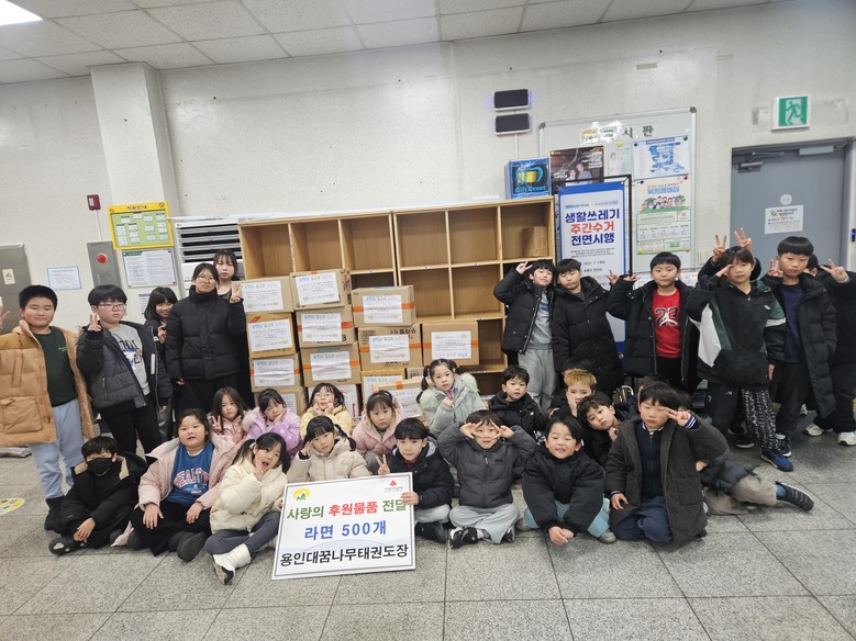 연말을 맞아 용인대꿈나무태권도장(관장 조성훈) 원생들은 어려운 이웃에게 따뜻한 마음을 전달하고자 십시일반 후원 물품을 모았다.