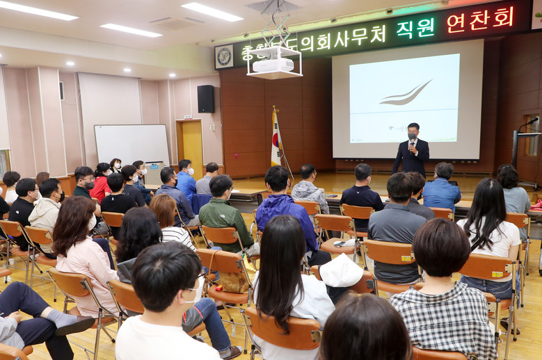 이번 연찬회는 제12대 의회 개원을 1개월 여 앞두고 차질 없는 개원 준비와 직원들의 사기를 진작하고 소통과 화합을 통해 의정지원 역량을 강화하기 위해 마련됐으며 ‘조직 활성화’ 와 ‘인사권독립 이후 사무처 직원의 역할’ 등에 대한 강의 및 토론, 직원화합 행사로 진행됐다.