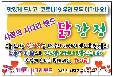 유희자 단장은 “코로나 19 힘든 상황에서 닭강정을 맛있게 드시고 힘을 내시길 바란다.”고 말했다.