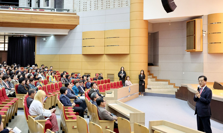 [대전 세계타임즈=이채봉 기자] 대전시의회 조원휘 의장은 15일 ‘2024년 유성구 통장 아카데미’가 열린 침례신학대학교 대강당을 찾아, “대전시의회는 통장이 지역 활동에 전념할 수 있도록 역량 강화를 비롯해 활동 여건을 더욱 세심히 살피겠다”고 밝혔다.