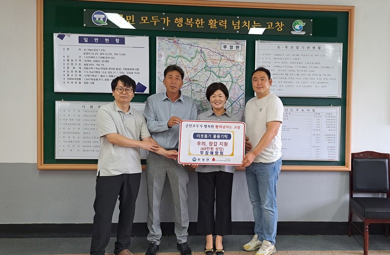 오수목 무장면장은 “무장면민을 위해 항상 애써주시는 무장애향회에 감사의 말씀을 전하며, 더욱더 행복한 무장면을 만들기 위해 최선을 다하겠다”고 말했다.