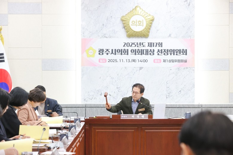[광주시 세계타임즈=송민수 기자] 광주시의회(의장 허경행)는 13일, 광주시의회 의원과 외부 위원 등 13명으로 구성된 「2025년도 제17회 광주시의회 의회대상 선정위원회」 회의를 개최하고 수상자를 선정했다고 밝혔다.