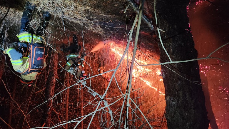 특히 윤암리와 정자리 일대의 산 능선을 타고 화선이 길게 형성되자, 119산불특수대응단은 안동과 청송 지역으로의 추가 확산을 막기 위해 마지막 방어선이 될 이 지역에 신속히 이동하여 방화선을 구축했다. 대원들은 밤새 화마와 사투를 벌이며 진화 작업을 이어갔다.