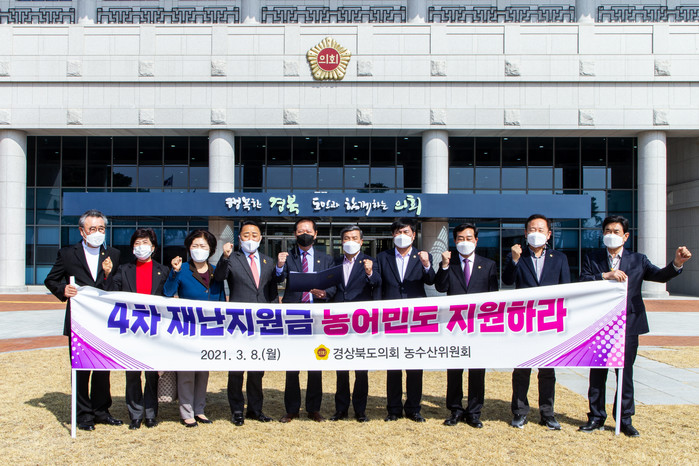 [경북=세계타임즈 한성국 기자] 경상북도의회 농수산위원회(위원장 남진복)는 제322회 임시회 기간 중인 3. 8일(월) 「코로나19 재난지원금 농어업분야 지원확대 건의안」을 가결시키고 본회의에 안건으로 제출하기로 했다.