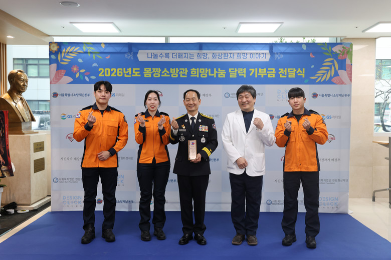 이번 전달식은 ‘2026년 몸짱소방관 희망나눔 달력 프로젝트’를 통해 마련된 판매 수익금에 GS리테일, LG트윈스 등 민간기업의 기부금을 더해 화상환자 지원기관인 한림화상재단에 전달하는 방식으로 진행됐다.