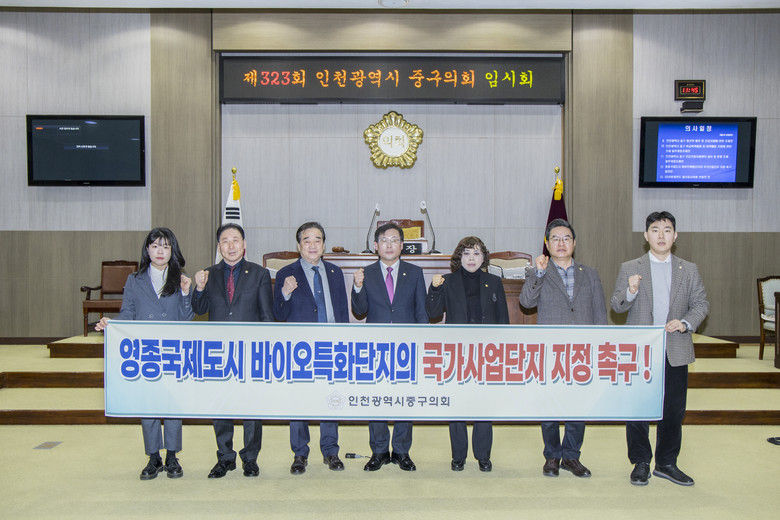 이에 중구의회는 영종국제도시가 2026년 7월 독립 행정체제로 출범하는 만큼, 일류도시로 발전하기 위해서는 영종국제도시 바이오특화단지를 국가산업단지로 지정하는 것이 필수적이라고 강조하며, “영종국제도시 바이오산업단지를 국가산업단지로 지정하는 것은 대한민국을 바이오산업 강국으로 성장시키는 데에 필수 불가결한 전제조건임”을 선언했다. 동시에 “영종국제도시 바이오 특화단지를 국가산업단지로 조속히 지정할 것”과 “행정절차 간소화, 관련 부처와의 긴밀한 협력 등 다양한 측면에서 적극적 지원할 것”을 강력히 촉구했다.