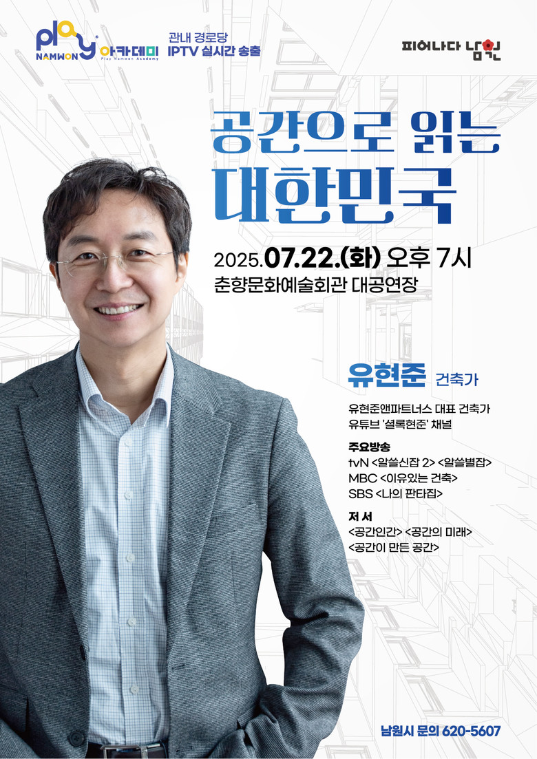 이번 플레이(Play)남원 아카데미에서는 도시와 공간 속에 숨겨진 이야기들, 그리고 그 공간이 우리의 삶과 생각, 관계에 어떤 영향을 미치는지 흥미롭게 풀어갈 예정이다.