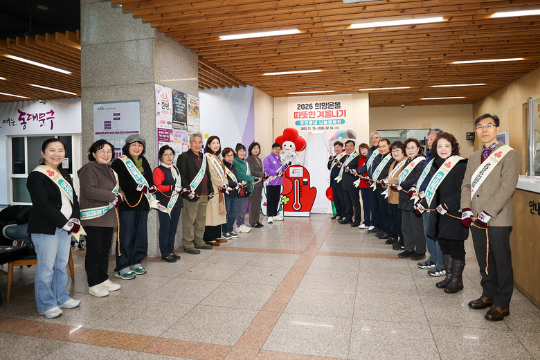 [동대문구 세계타임즈=이장성 기자] 서울 동대문구(구청장 이필형)는 14일 구청 1층 로비에서 ‘사랑의 온도탑’ 제막식을 열고, 서울 사회복지공동모금회와 함께하는 ‘2026 희망온돌 따뜻한 겨울나기, 우리동네 나눔캠페인’을 시작했다고 밝혔다.