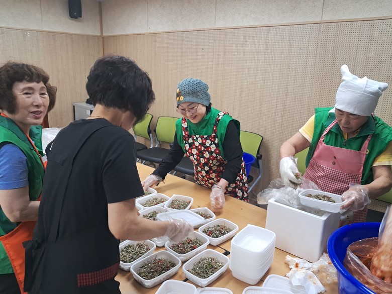 [남구 세계타임즈=이호근 기자] 신정1동 새마을부녀회(회장 권오숙)은 4일 회원 10여 명과 함께 신정1동 행정복지센터에서 관내 취약계층을 위한 사랑의 반찬 나눔 행사를 실시했다.
