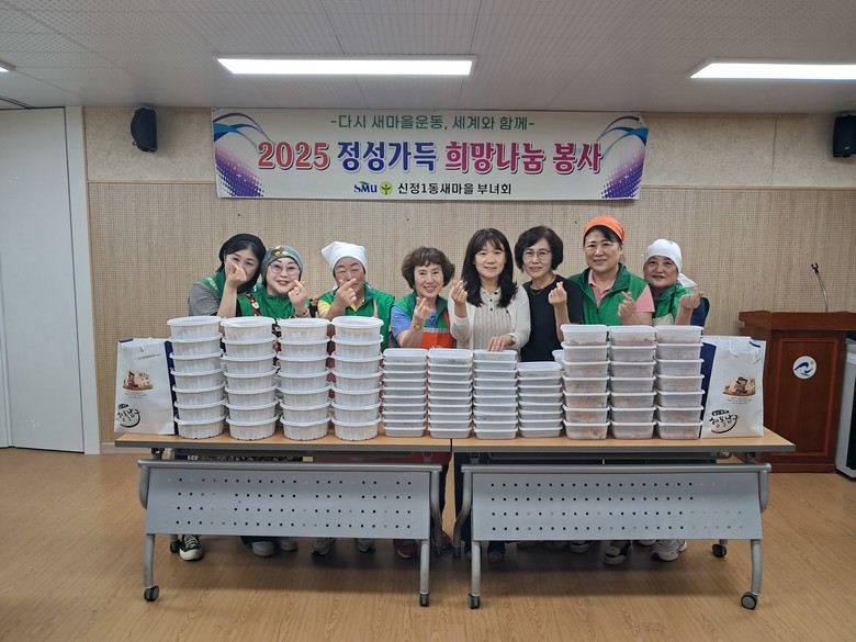 이날 신정1동 새마을부녀회는 사랑과 정성을 담은 밑반찬을 직접 포장해 관내 저소득 가구 40세대에 전달했다.