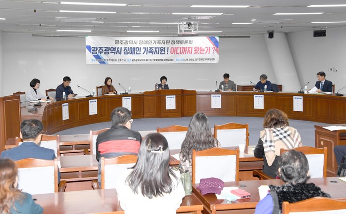 이날 토론회는 ‘광주광역시 장애인 가족지원 어디까지 왔는가?’를 주제로 이어졌는데, 전국장애인가족지원센터 협의회 서은경 회장이 기조발제를 하고, 광주장애인가족지원센터 김유선 센터장, 하남종합사회복지관 박종민 관장, 광신대학교 복지상담융합학부 김경열 교수, 장애인권인옹호기관 박찬동 기관장, 광주광역시청 장애인복지과 박찬대 과장 등이 토론에 참여했다.