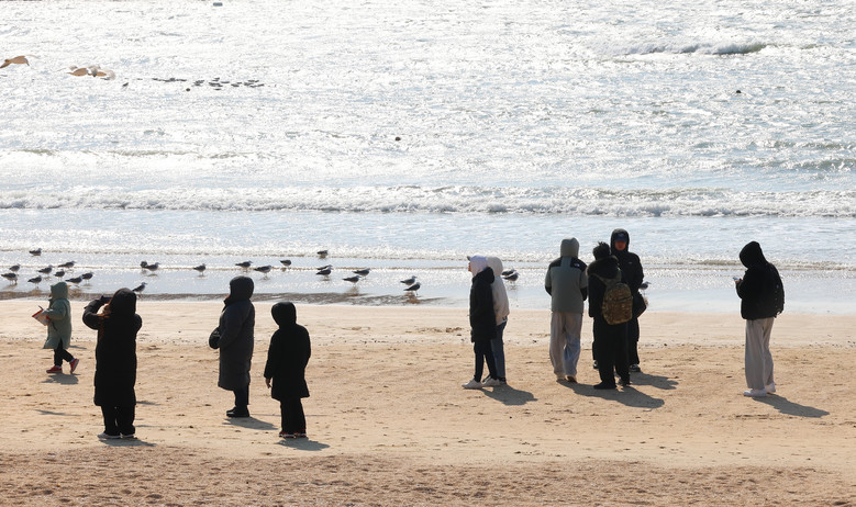 [인천 세계타임즈 = 심하린 기자] 추위가 이어진 23일 인천 중구 을왕리해수욕장을 찾은 시민들이 찬바람 속에서 해변을 걷고 있다. 2025.2.23
