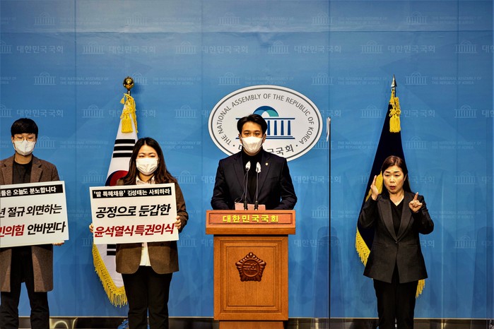 취업난에 좌절 한 청년들은, 채용비리 혐의가 난무했다는 것에 또 좌절했고, 그 연루자가 떳떳하게 대통령선거의 책임자로 나타난 것에 또 한번 좌절했습니다. 이제 윤석열 후보는 공정을 입에 올릴 자격이 없습니다.