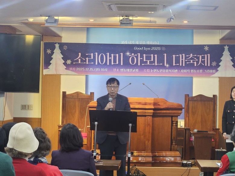 논현노인종합복지관의 상생복지관인 영동제일교회에서 마련된 이번 행사는 이새날 서울시의원의 축사, 서울시의장상 시상식, 소리새합창단의 크리스마스 캐롤공연, 그리아미 선수들의 거위의 꿈 노래공연, 성탄절 맞이 선물전달식 순으로 진행되었다.