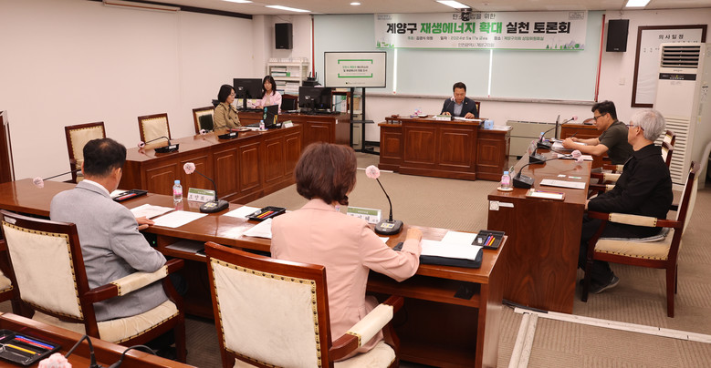 [계양구 세계타임즈=심하린 기자] 인천 계양구의회(의장 조양희)는 17일 계양구의회 5층 상임위원회실에서 탄소중립을 위한 재생에너지 확대 실천 토론회를 개최했다.