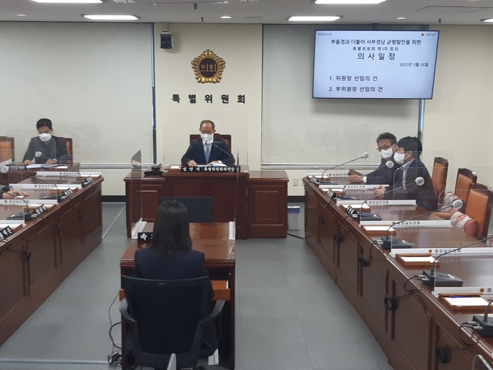 [경남=세계타임즈 최성룡 기자] 부울경과 더불어 서부경남 균형발전을 위한 특별위원회가 25일 제1차 회의를 열어 위원장에 성연석 의원(진주2, 민)을, 부위원장에 백수명 의원(고성1, 국)을 선출하였다.