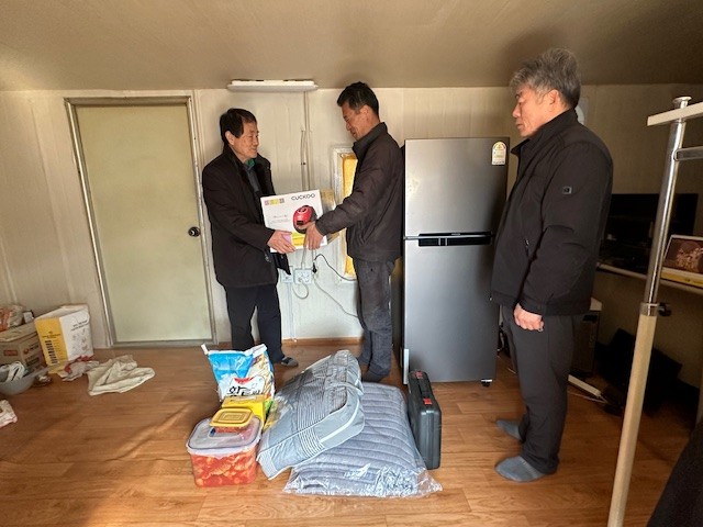 이 가구는 주소가 군위군에 없지만 생활한 지 4~5년 되었다며 지인의 도움 요청으로 알게 되어 방문했으며 비닐하우스 안 컨테이너에 살면서 전기시설이 열악하여 전기도 마음대로 사용할 수 없어 전기용품도 없는 실정이어서 정나눔회가 전기시설을 점검해 주고 냉장고, 밥솥, 가스버너 등 기본적인 물품을 지원해 주고 찾아가는 보건복지팀에서도 후원받은 이불, 쌀, 김치 등 생필품을 챙겨 주었다.