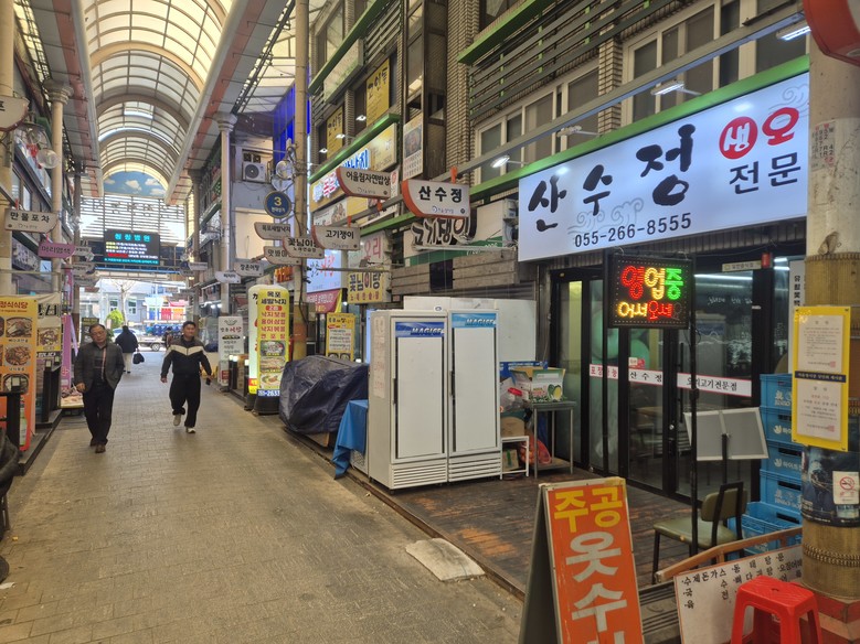 산수정이 오픈한 이래 이곳 전통시장에서 생오리 요리로 많은 단골손님도 꽤 확보되어 있다.보신중에 보신 ‘황칠오리탕’ 맛 때문에 수 년째 장사를 이어오가 있다. 황칠은 예로부터 특유의 황금색과 희소성 때문에 귀한 대접을 받아왔다.