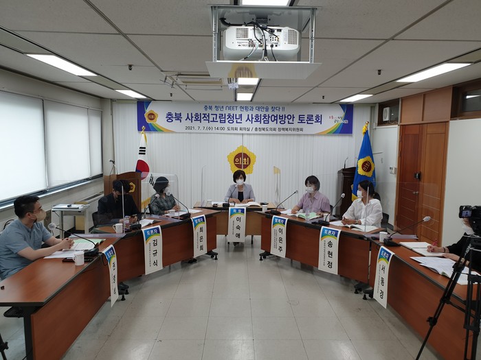 [충북=세계타임즈 이현진 기자] 충청북도의회 정책복지위원회는 7일 도의회 회의실에서 이숙애 도의원(청주1)이 좌장을 맡아 <충북 청년 NEET* 현황과 대안을 찾다!!>라는 주제로 ‘충북 사회적고립청년 사회참여방안 토론회’를 개최했다.