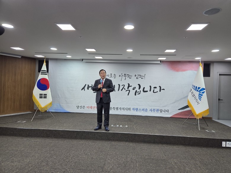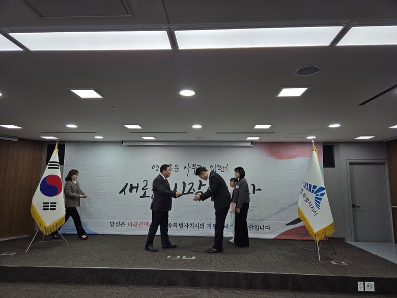 [세종 세계타임즈=이채봉 기자] 세종특별자치시(시장 최민호)가 17일 시청 대회의실에서 가족과 간부 공무원 등 70여 명이 참석한 가운데 사무관 임용식을 개최했다.