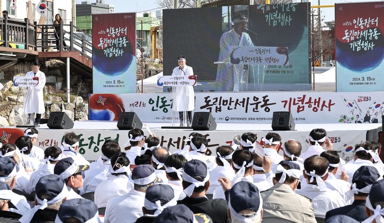 [대전 세계타임즈=이채봉 기자] 대전시의회 이상래 의장은 15일 동구 인동 3·16 만세로 광장에서 개최된 ‘제21회 인동장터 독립 만세운동 기념식’에 참석해 내빈들을 비롯한 시민들과 인사를 나눴다.