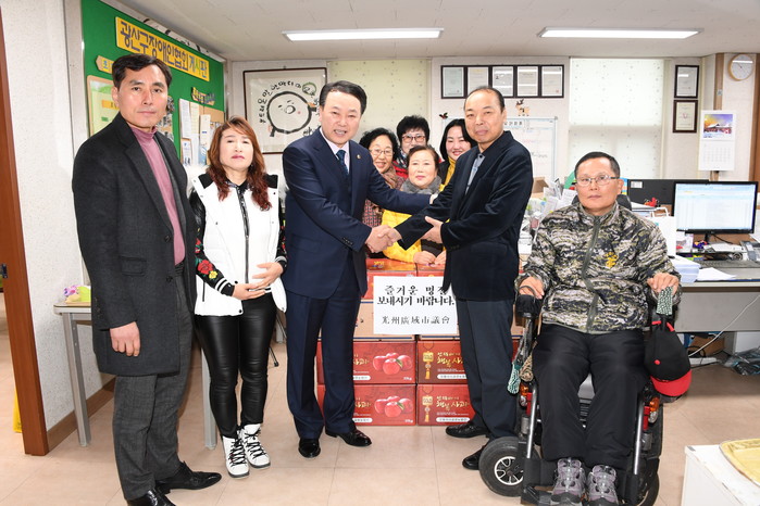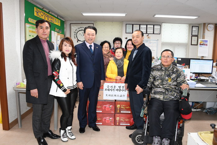 [광주=세계타임즈 손권일 기자] 광주광역시의회 김익주 행정자치위원장은 1월22일 광산구 하남동에 소재한 광산구장애인협회를 방문해 위문품을 전달하고 관계자들의 노고를 격려했다