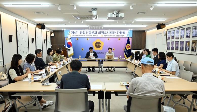 [세종 세계타임즈=이채봉 기자] 세종특별자치시의회(의장 임채성) 산업건설위원회(위원장 김재형)는 29일 오후 의회 청사 1층 대회의실에서 의정모니터단 산업건설분과 간담회를 열고, 지난 제98회 정례회 결산 및 행정사무감사 모니터링 결과를 공유하며 향후 운영 방안을 논의했다.