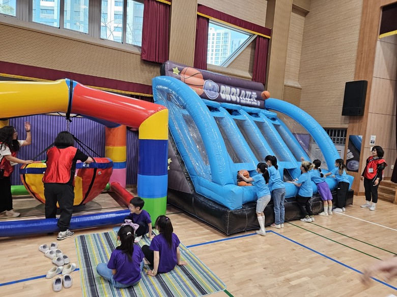 이번 유・초 이음 어린이날 주간을 위하여 에어바운스, 바이킹 시소, 스윙그네, 농구와 축구장, 미니기차 등 다양한 놀이기구를 설치하여 학교에 미니 놀이동산을 만들었다. 이번 행사를 통하여 유치원과 초등학생들이 스트레스를 해소하고 즐겁게 놀이를 하며 친해질 수 있는 기회가 되었다.