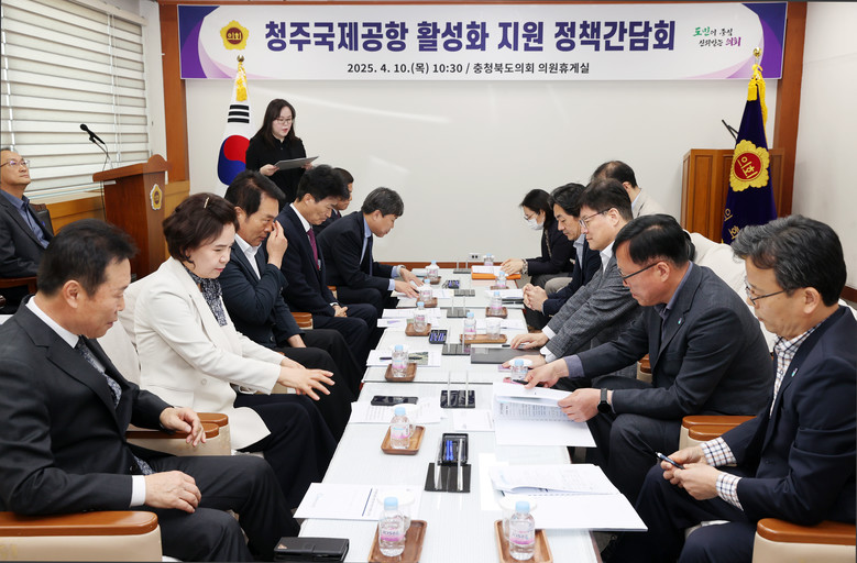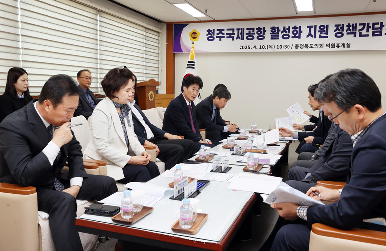 [충북 세계타임즈=이현진 기자] 충북도의회는 10일 도의회 의원휴게실에서 ‘청주공항 활성화 지원 정책간담회’를 갖고 공항 활성화 방안을 논의했다.