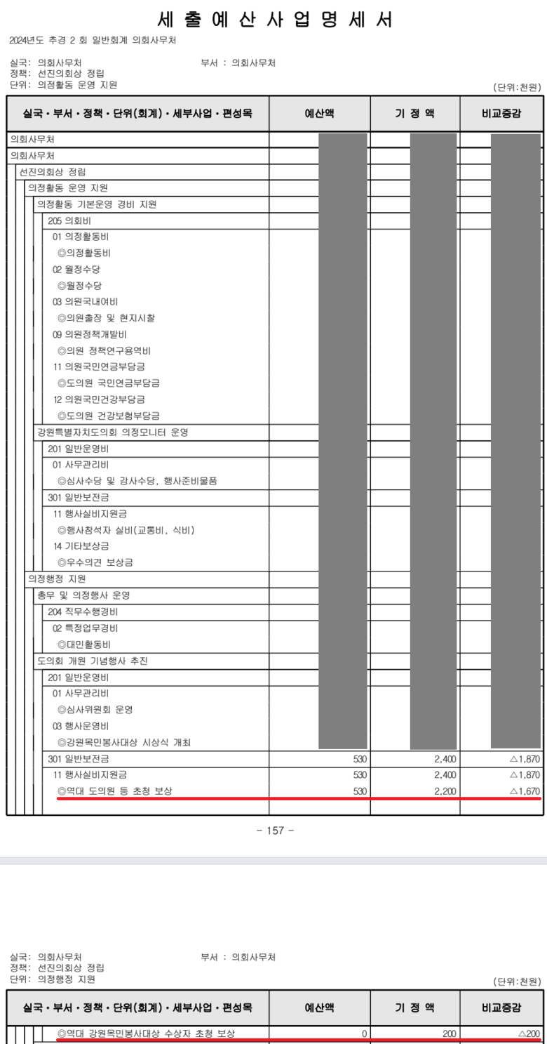 [별첨자료 1] 의회사무처 2024년도 제2차 추경 예산안 157~158페이지