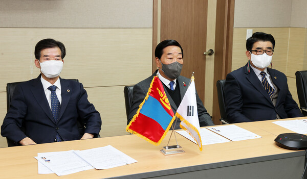 [충북=세계타임즈 이현진 기자] 충북도의회는 박문희 의장과 이의영 부의장, 최경천 대변인이 24일 몽골 울란바타르시의회 바트바야스갈란 의장과 영상회의를 가졌다고 밝혔다.