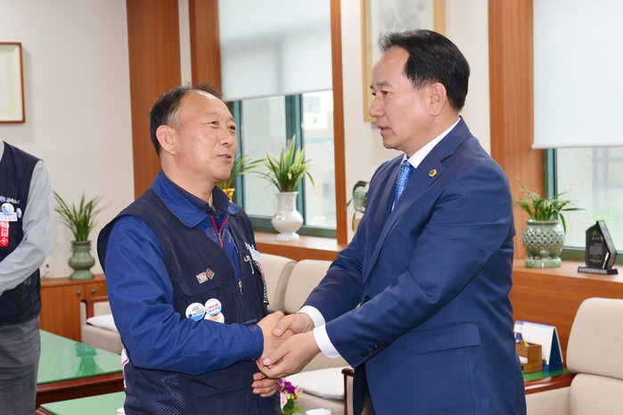 황세영 의장은 “전국금속노조 현대중공업지부의 애로사항을 충분히 이해하며 본사 이전 등 문제에 대해서는 울산시와 적극 협의해서 대응방안을 모색하고, 아울러 시의회 차원에서도 깊은 관심을 가지고 시의원들과 협의하여 해결 방안을 적극 강구해 보겠다”며 격려하였다.