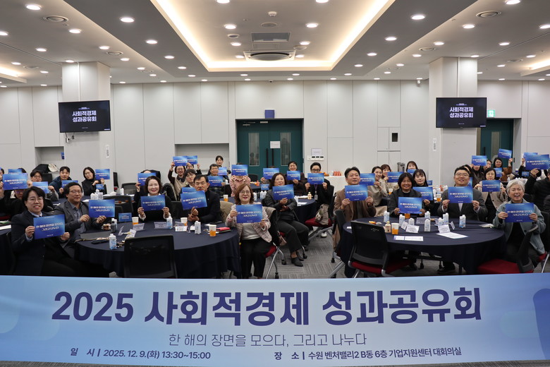 [수원시 세계타임즈=송민수 기자] 수원특례시의회 기획경제위원회(위원장 장정희)은 지난 9일, 수원 벤처밸리 내 기업지원센터에서 열린 ‘2025 사회적경제 성과공유회–한 해의 장면을 모으다, 그리고 나누다’에 참석했다. 수원시가 주최하고 수원도시재단이 주관한 이번 행사는 ▲사회적경제지원센터 주요 성과 발표 ▲사회적경제 활성화 유공 시상 ▲우수사례 공유 ▲참여자 간 네트워킹 등으로 진행되었고, 수원시사회적기업협의회, 수원시이종협동조합연합회, 수원시자활기업협회 등이 협력했다.
