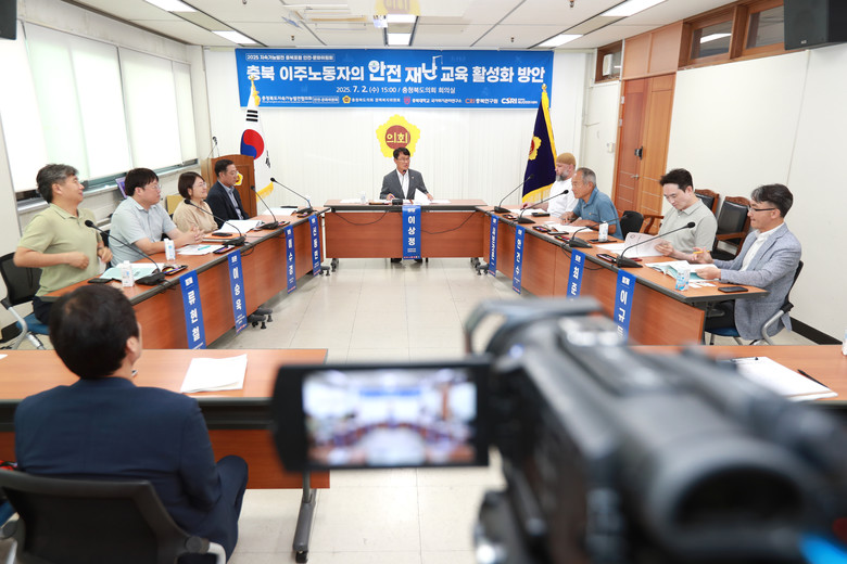 이상정 의원(음성1)이 좌장을 맡아 도의회 이의영 부의장과 김영배 충북연구원장이 축사를 했으며 류현철 재단법인 일환경건강센터 이사장이 ‘이주노동자 안전·재난 대비 및 지원체계 개선 방안’을, 이규득 한국산업안전보건공단 충북본부장이 ‘충북의 안전·재난 현황(이주노동자 중심으로)’을 각각 주제 발표했다.