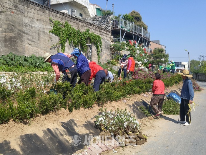 [충주=세계타임즈 이현진 기자] 2017년 도민참여 행복정원사업에 참여하고 있는 충주시 지현동 행복경로당 회원들이 27일 마을안길 행복정원에 철쭉과 황매화, 눈주목, 리라칸사 등 2천여 본의 꽃묘를 식재하며 구슬땀을 흘렸다.