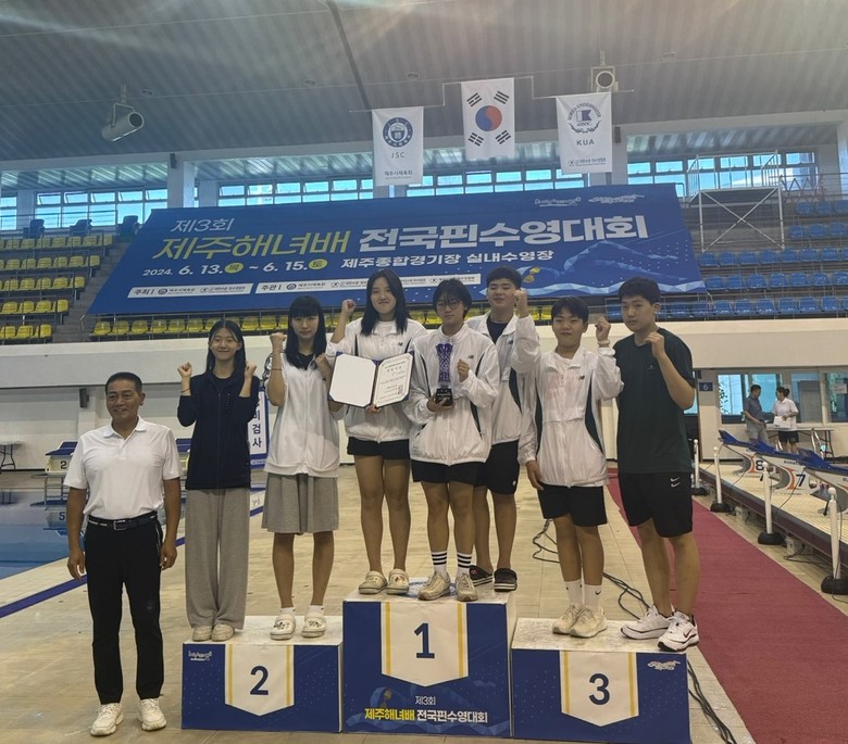 [광주 세계타임즈=손권일 기자] 광주체육중학교가 13일부터 3일간 제주도에서 개최된 ‘제3회 제주해녀배 전국핀수영대회’에서 금3, 은2, 동1개를 획득하며, 종합우승을 차지했다고 밝혔다.