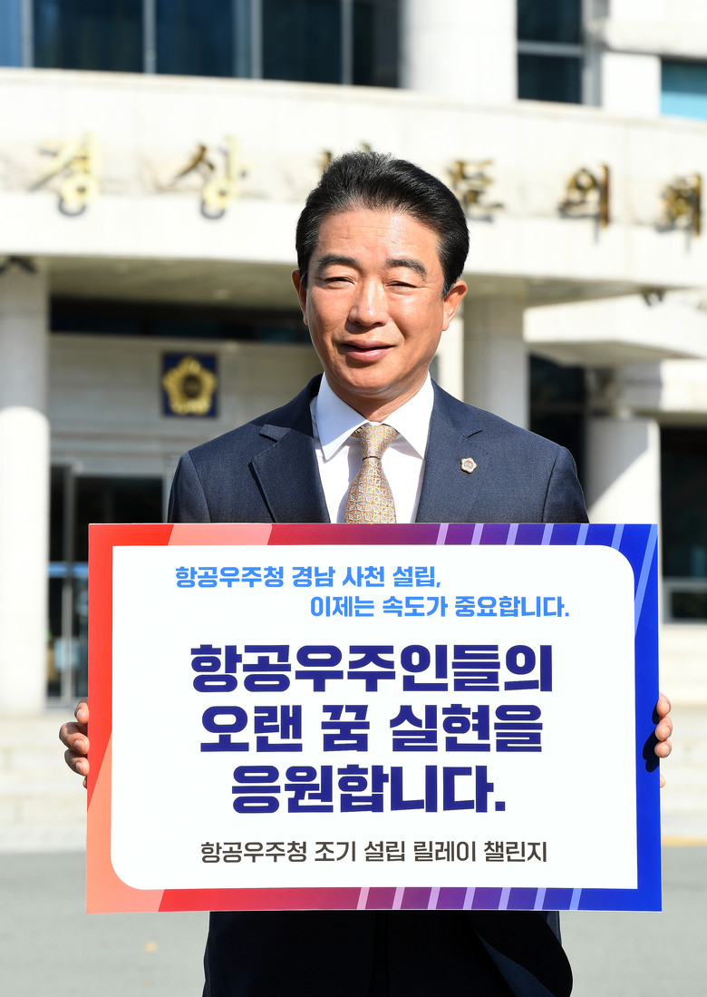 [경남 세계타임즈=최성룡 기자] 최학범 경상남도의회 제2부의장은 26일 항공우주청 조기 설립 릴레이 챌린지에 참여했다.