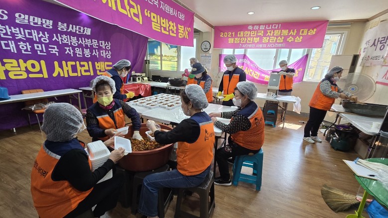 [대전 세계타임즈=이채봉 기자] 지방자치단체의 보조금 지원없이 대전지역 소외계층을 위해 9년째 다양한 봉사활동을 매월15회~20회를 하고 있는 사랑의 사다리 밴드(리더 이정제) 봉사단체는 4일 맛있는 밑반찬을 만들어서 대덕구 소외계층 80가정에 전달하면서 따뜻한 사랑을 실천 하였다.