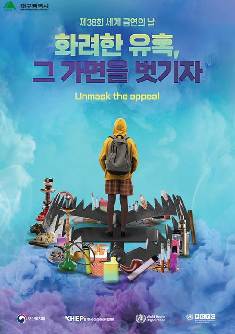 이번 행사는 대구시가 주최하고 19개 유관 기관*이 공동 참여하여 올해 주제인 ‘담배의 화려한 유혹, 그 가면을 벗기자’라는 주제로 담배의 유해성과 금연의 필요성을 시민들에게 알렸다.