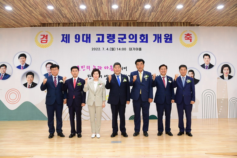 제9대 고령군의회의 전반기를 이끌어 나갈 군의장은 고령군 다선거구 재선의원인 김명국 의원을 선출했으며, 부의장으로는 비례대표 초선의원인 유희순 의원을 선출했다.