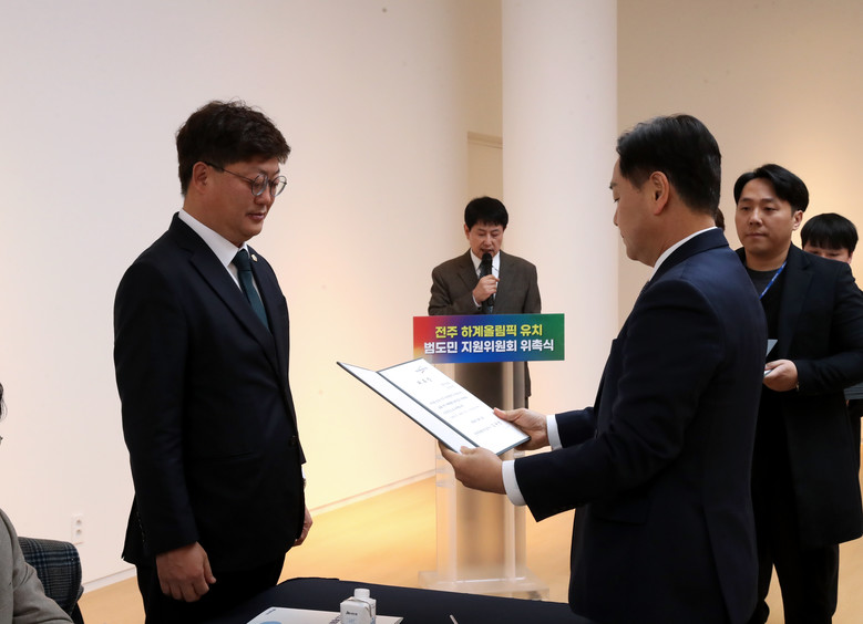 11일 전주시의회에 따르면 송 의원과 이 의원은 이날 전북대학교 삼성문화회관에서 열린 전주하계올림픽 유치 성공 기원 다짐대회에서 각각 범도민지원위원회 사무총장과 사무국장(전주)에 위촉됐다. 범도민지원위원회는 두 의원을 비롯해 각계 인사 48명으로 구성됐다.