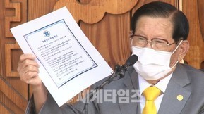 [세계타임즈 이채봉 기자]신천지예수교 증거장막성전(이하 신천지예수교회) 이만희 총회장은 7일 특별지시 공문을 통해 방역에 전 성도가 협조할 것을 또 한 번 호소했다.