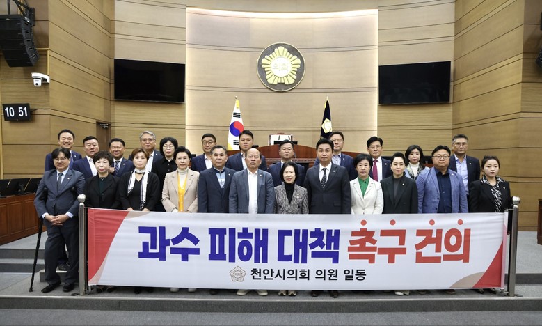 [천안시 세계타임즈=백택기 기자] 천안시의회(의장 김행금)는 21일 제273회 임시회 제2차 본회의에서‘과수 피해 대책 촉구 건의안’을 채택했다.