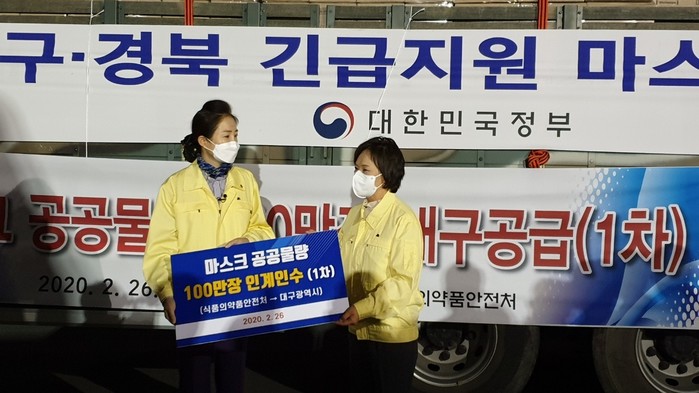 이의경 처장도 1차분 마스크를 대구시에 전달하면서 추가 공급하기로 한 마스크 뿐 아니라 손세정제와 체온계도 충분히 공급될 수 있도록 하겠다고 말했다. 또한 고통을 겪고 있는 시민들을 위로하고, 사태의 조속한 진정을 기원했다.