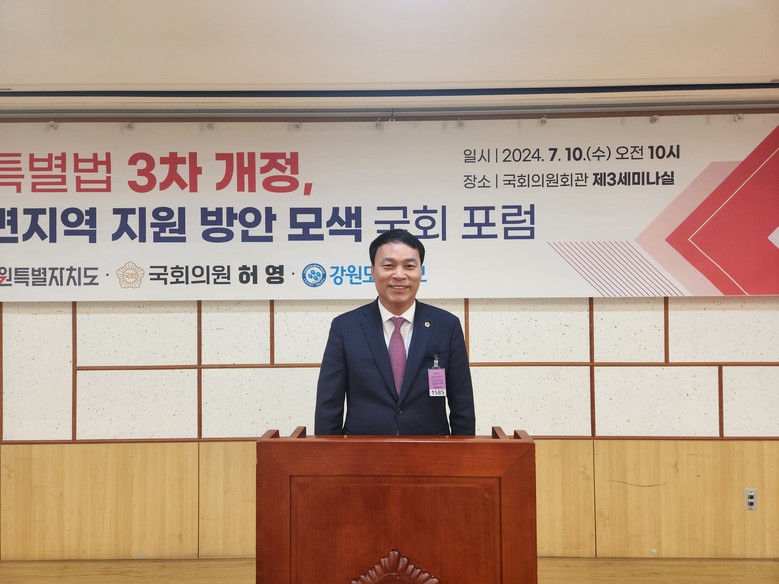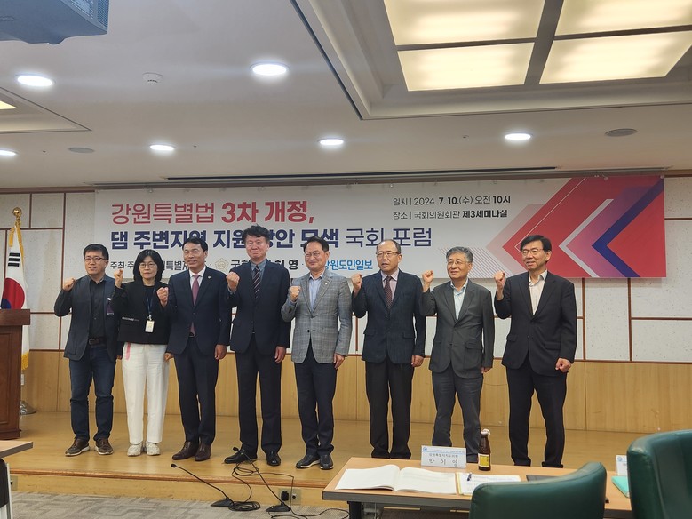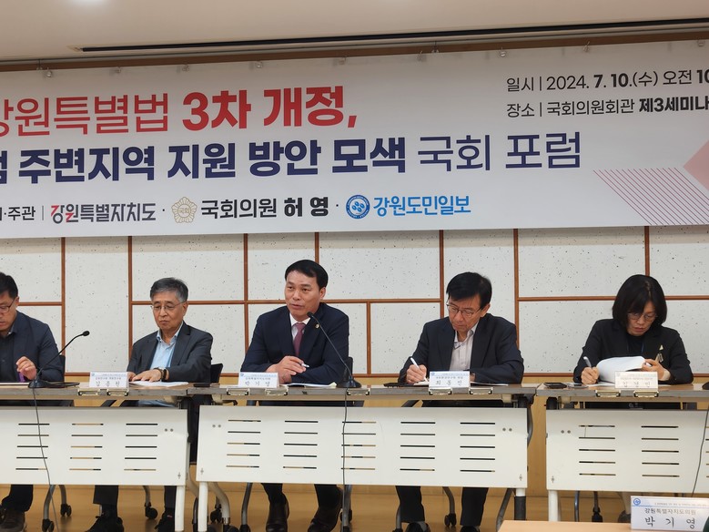 한편, 이날 열린 강원특별법 3차개정 핵심과제 국회포럼은 강원특별자치도와 국회의원 허영의원실이 공동으로 주최하고, 강원도민일보가 주관했으며, 허영 국회의원과 경민현 강원도민일보 사장, 그리고 강원연구원과 국토환경연구원 및 충북연구원의 연구원들이 참석했다.