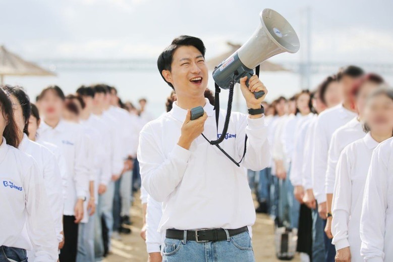 ▲28일 오전 신천지예수교 증거장막성전(신천지예수교회) 부산야고보지파 부산교회가 광안리 해변 일대에서 ‘계시 성취 실상 증거 말씀대성회’ 홍보를 실시한 가운데 성창호 지파장이 시민들에게 말씀대성회 참여를 독려하고 있다. [사진 제공 = 신천지 부산교회]