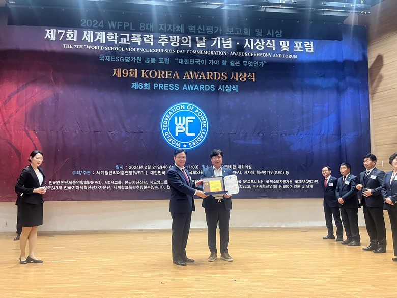 [남동구 세계타임즈=심하린 기자] 남동구의회 황규진 의원(구월3동,간석1·4동/더불어민주당)이 세계청년리더총연맹(WFPL)이 주최·주관하는 2024 WFPL 8대 지자체 혁신평가에서 대상을 수상했다.